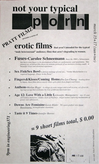Pratt_1998Mar15+17_erotic January 1, 2014 Return to: Other Screenings at PrattFull resolution (325 × 540) Image navigation Previous Image Next Image Pratt Film Series poster Pratt Film Series poster