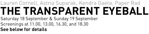 “The Transparent Eyeball” program organized by White Diamond Projects and Michael Connor, including work and performances by Ara Peterson, Cory Arcangel, Peter Coffin, Paper Rad, Beige, and Suparak + Cornell.
