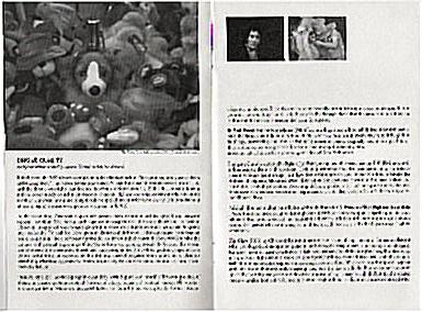“Universal Games isolates, freezes, pairs, manipulates, and sequences images appropriated from one week of New York network TV news footage aired in October of 2000, when the two top stories were the Subway Series (The Yankees-Mets World Series of baseball) and the escalation of the Israeli-Palestinian conflict (the Al-Aqsa Intifada), in order to expose the strange similarity in the way our media outlets report stories of wildly varying gravity” – M.G.