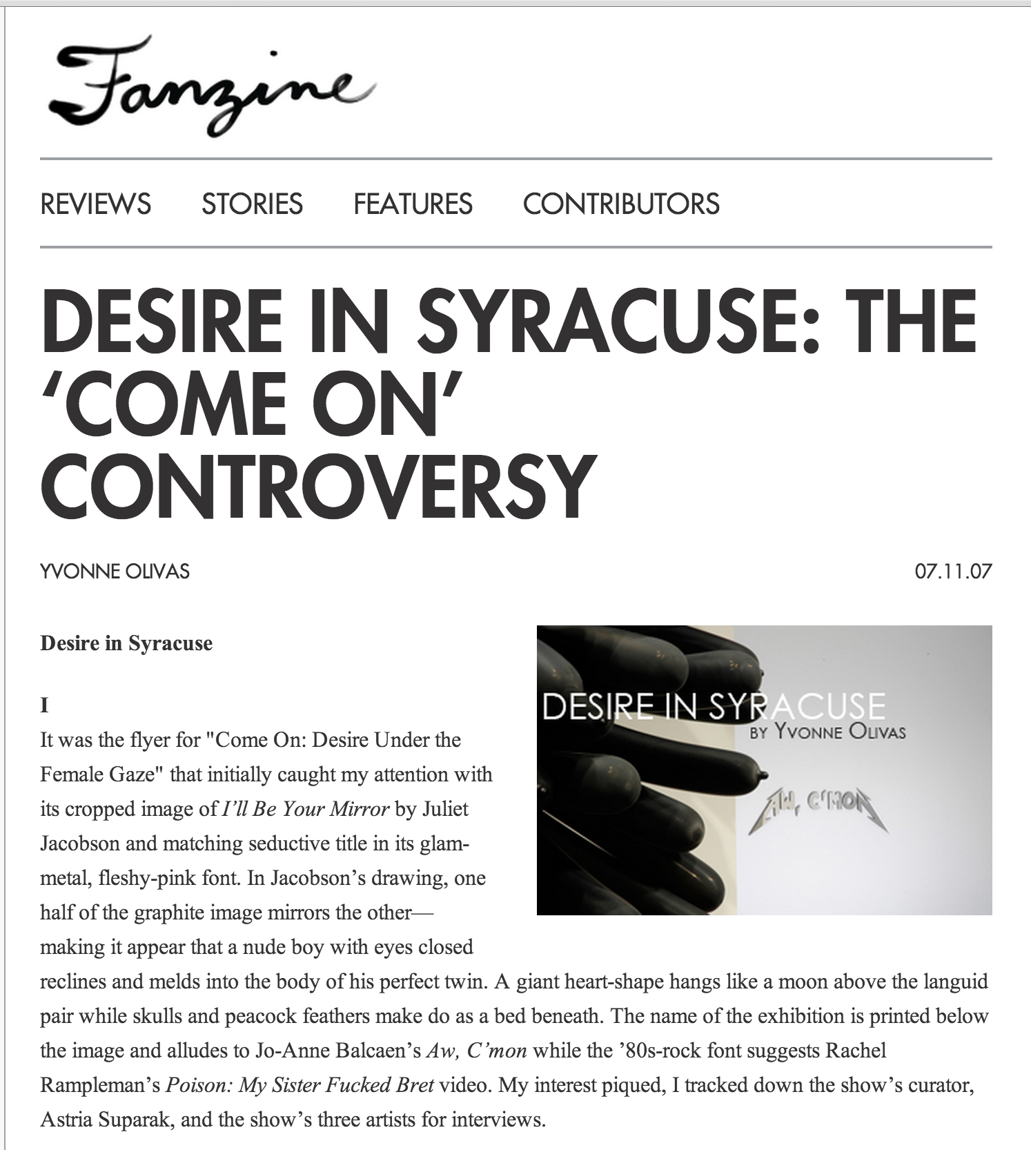 Standing in sharp contrast to this text-book approach was Suparak whose exhibitions resisted narrow thinking and neat categorization—”Come On” was exemplary in this regard. For Hoone though, it must have had the character of something he could not understand nor contain—it was too messy, too sexy, too complicated—overall, too hot. But it was the same HOT thing that Syracuse embraced; and while probably challenging, a threat it was not. The fact is that Suparak did curate contextually strong exhibitions. This is why she had a following. This is why the Warehouse was widely hailed as a success… Suparak was exceedingly capable of creating a context for challenging and new work.