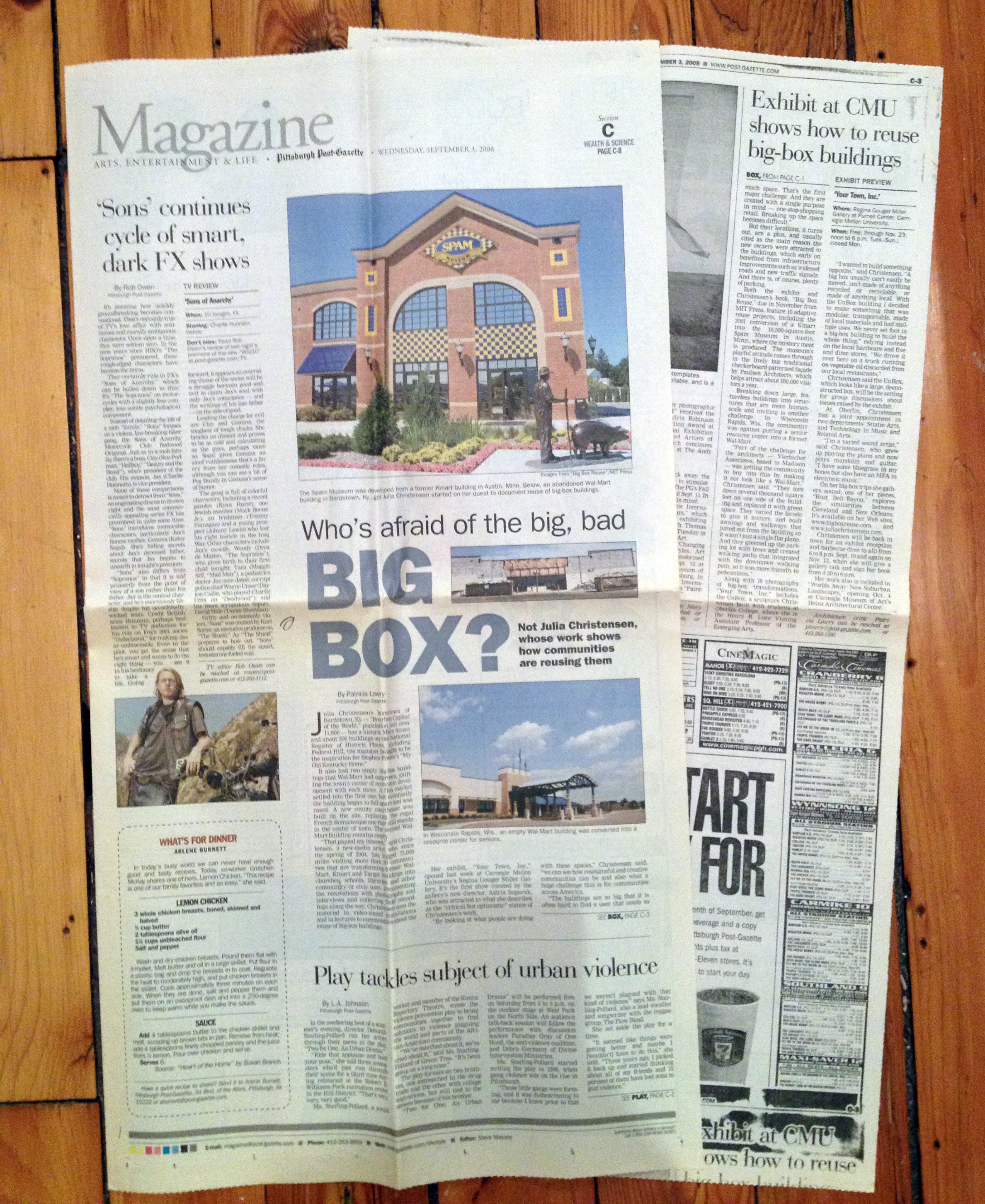 PG-Mag-cover_YTI_2008 July 21, 2014 Return to: YOUR TOWN, INC.: Big Box Reuse with Julia ChristensenFull resolution (2376 × 2906) Image navigation Previous Image Next Image Cover of Pittsburgh Post-Gazette Magazine