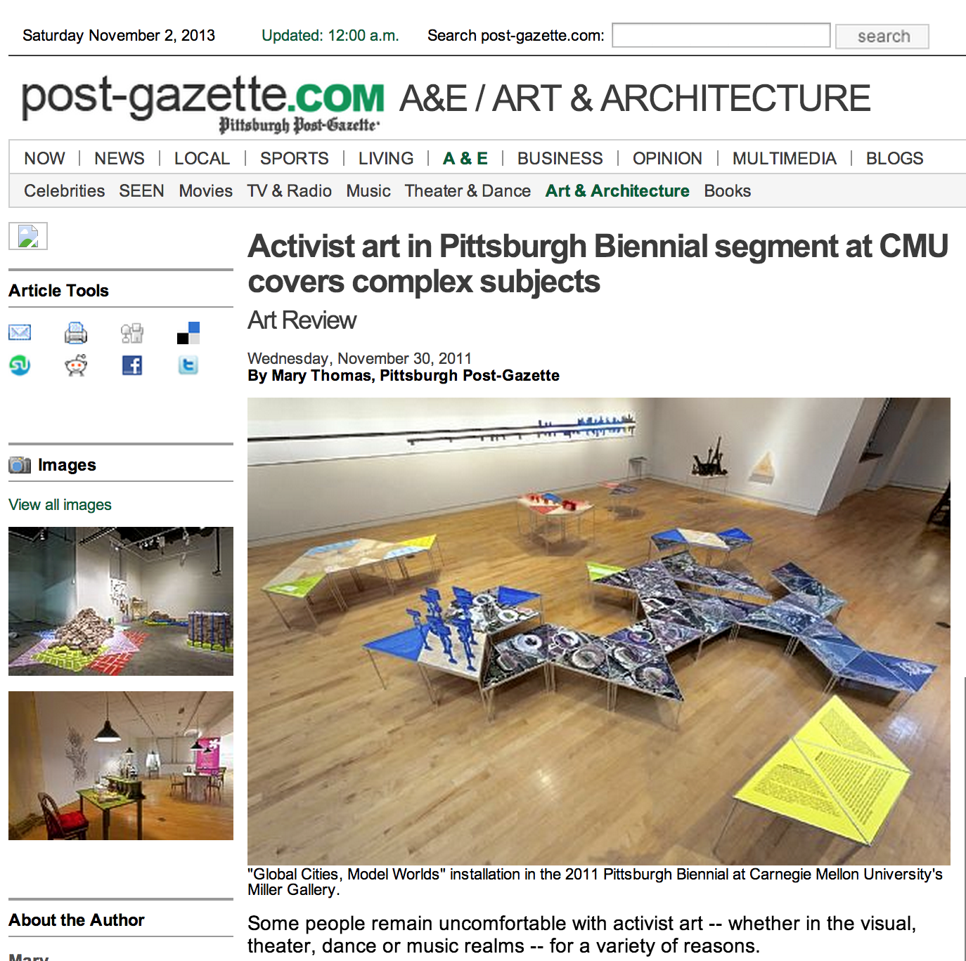 PostGazette_2011PittsburghBiennial-CMU December 27, 2013 Return to: 2011 PITTSBURGH BIENNIALFull resolution (1374 × 1368) Image navigation Previous Image Next Image Post-Gazette's review of the 2011 Pittsburgh Biennial at CMU