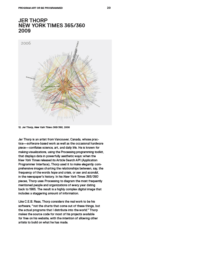 20 October 30, 2013 Return to: NEW ART/SCIENCE AFFINITIESFull resolution (719 × 931) Image navigation Previous Image Next Image Program Art or Be Programmed: Jer Thorp