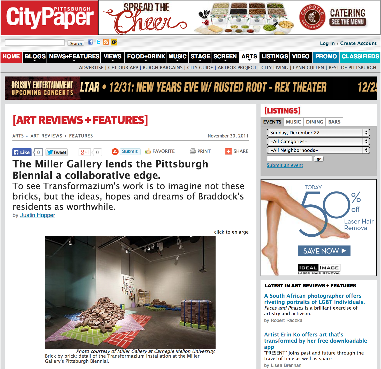 Read full review online: http://www.pghcitypaper.com/pittsburgh/the-miller-gallery-lends-the-pittsburgh-biennial-a-collaborative-edge/Content?oid=1459289