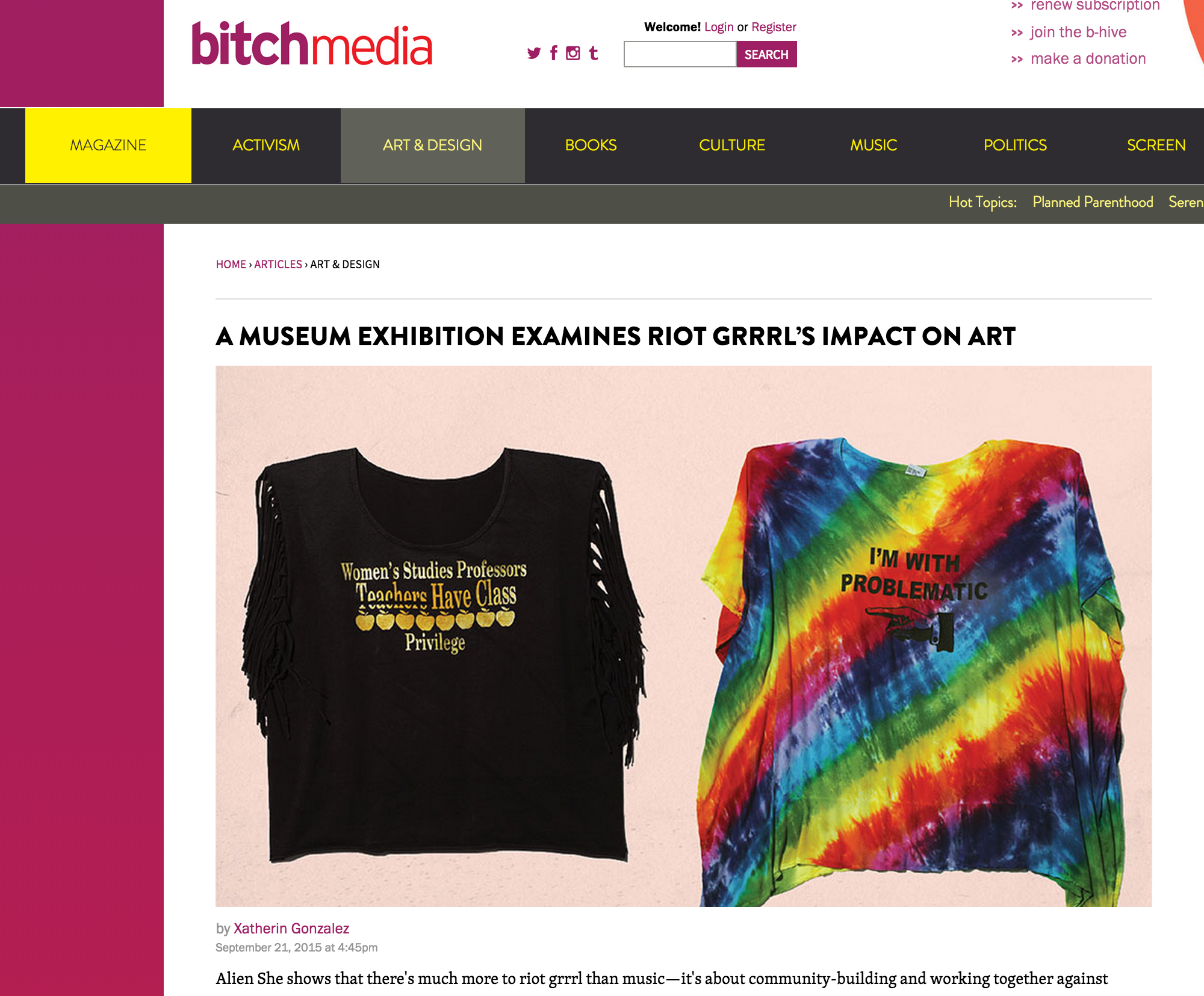 Alien She is currently on display at the Museum of Contemporary Craft and Pacific Northwest College’s 511 Gallery until January 9, 2016. As part of the show, Bitch Media Art Director Kristin Rogers Brown has pulled together ephemera from organizational and staff personal archives for a behind-the-scenes look at designs of Bitch. These items will be featured in the Community Showcase at the Museum of Contemporary Craft, opening Oct. 1.
