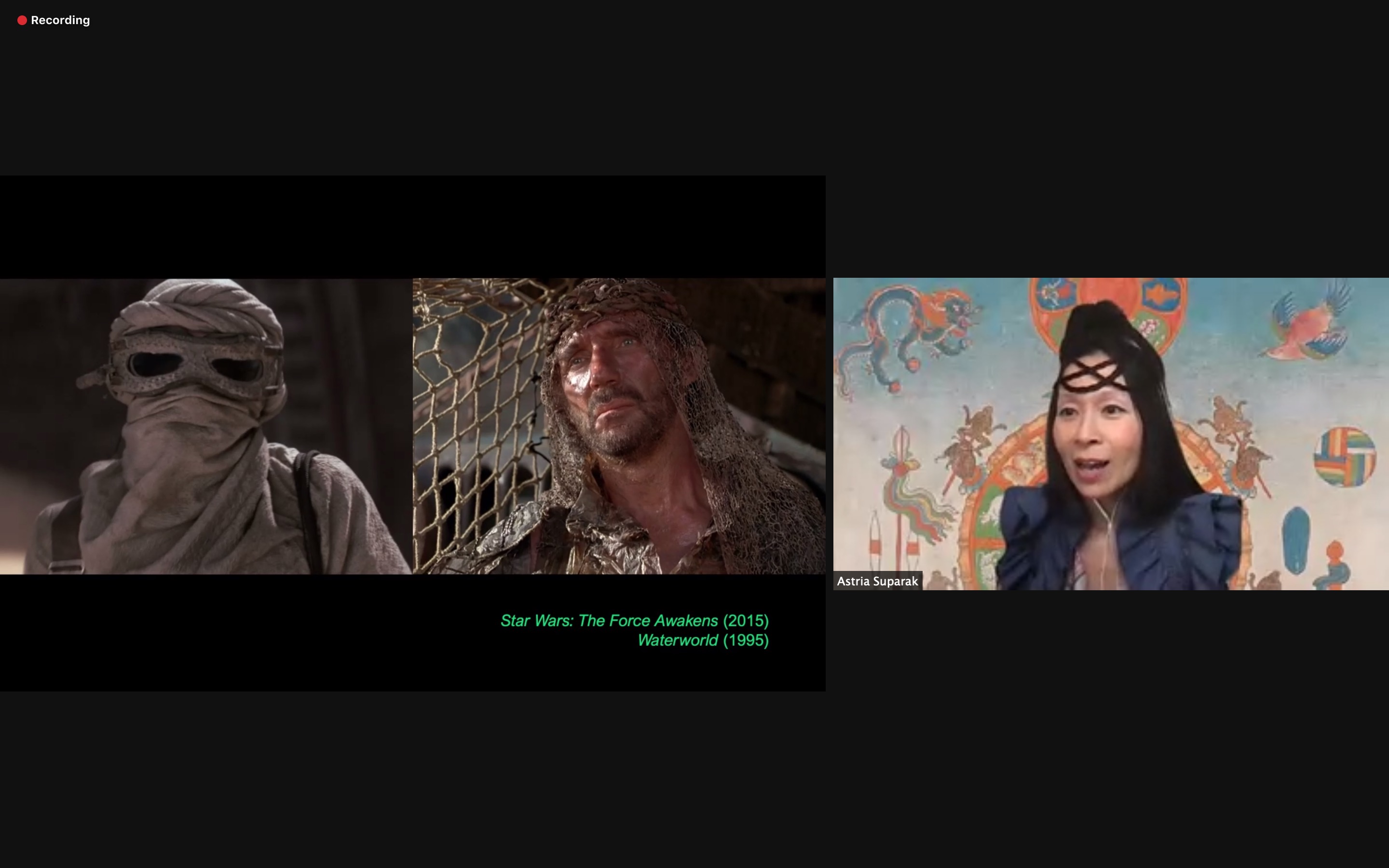 I was invited to watch a presentation called Asian futures, without Asians by the artist Astria Suparak. Her talk looks at how science fiction often depicts a future full of Asian iconography that’s mixed-up and taken out of context. But there aren’t many Asian people in these futures. This is a talk she’s given in person and virtually. And her presentation has been paired with exhibits at museums and galleries.