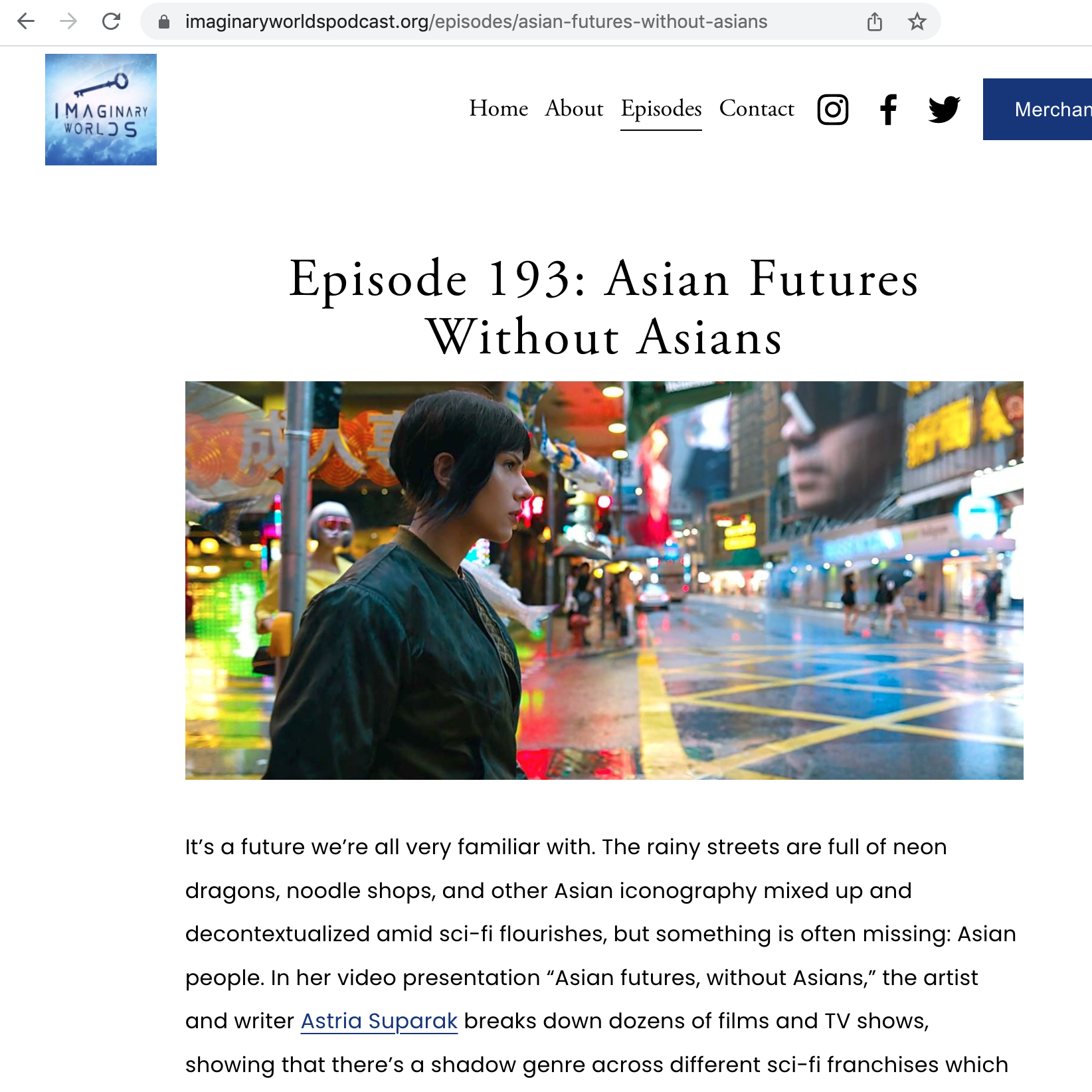 IMAGINARY WORLDS PODCAST, Episode 193: “Asian Futures Without Asians,” Eric Molinsky, March 3, 2022
