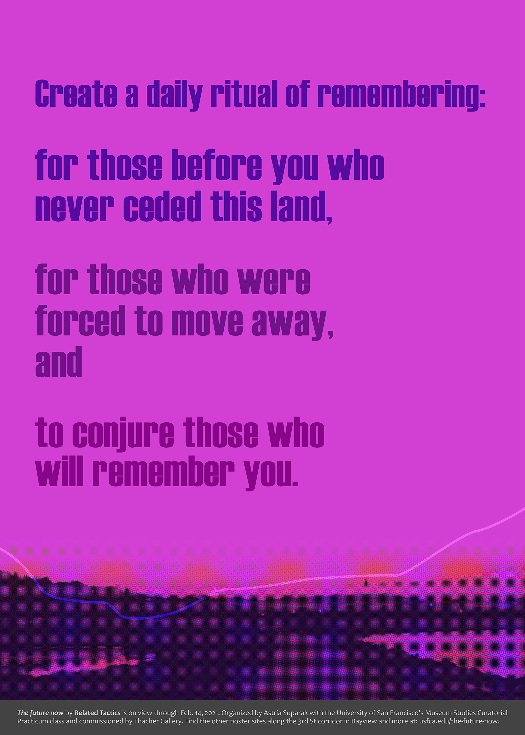 Organized by Astria Suparak with University of San Francisco’s MA in Museum Studies Curatorial Practicum class in collaboration with Thacher Gallery