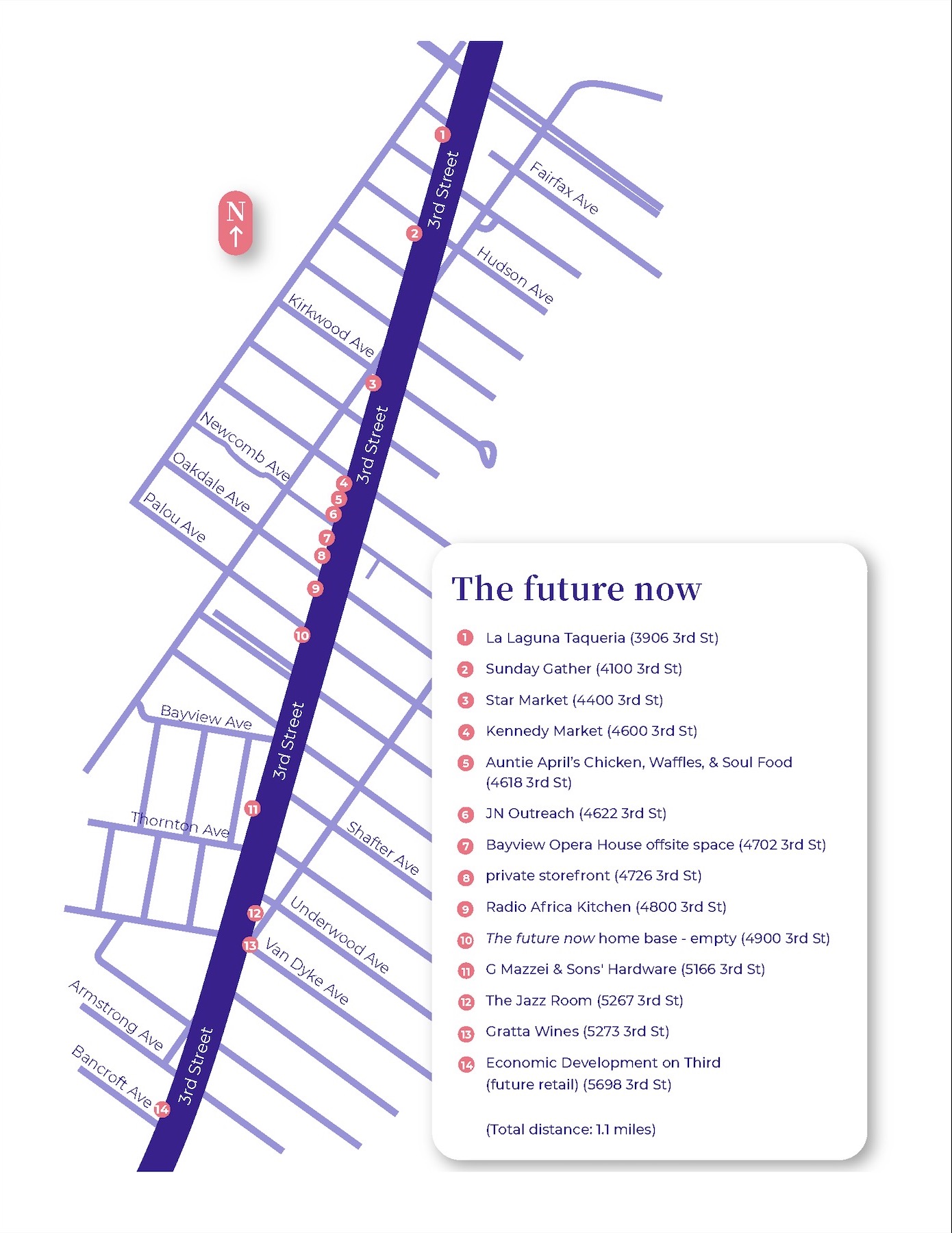 The future now is a sprawling, site-responsive series that illuminates facets of Black life in the city and explores national politics. Presented in English, Spanish, and Chinese, the vibrant posters include historical images, provocative meditations, and calls to action. The participating businesses are markets, restaurants, a hardware store, a wine store, community and art organizations, and other sites, such as The Jazz Room, which has been providing residents with live music and libations since 1962.