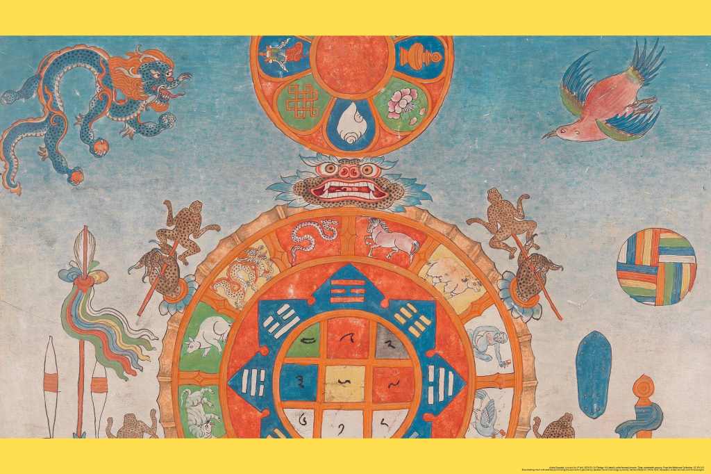 These cultural materials contain concepts central to present-day sci-fi and fantasy, such as the cosmos (or outer space), eternal life (immortality), magical and mythical creatures and deities (a.k.a. extraterrestrial and synthetic life), astrology and divinations (otherwise known as predictions of the future), and the apocalypse. Formatted as virtual backdrops for Astria Suparak’s touring multimedia performance Asian futures, without Asians, they can be downloaded for use as your own Zoom backdrop or desktop wallpaper, and printed out as a physical backdrop for your office, bedroom, or wherever.
