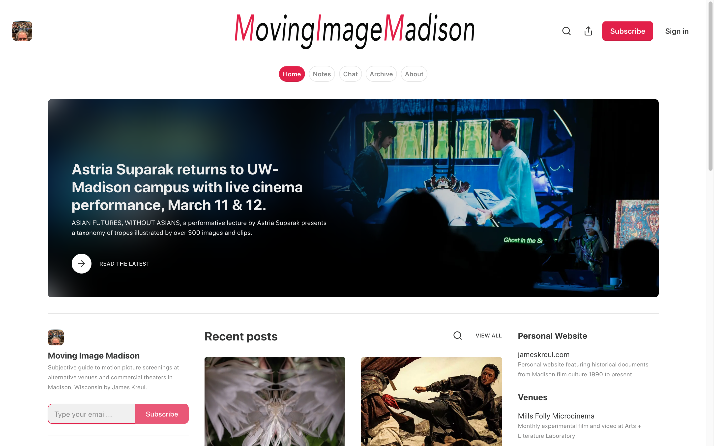 Moving Image Madison, “Astria Suparak returns to UW-Madison campus with live cinema performance,” James Kreul, March 02, 2026
