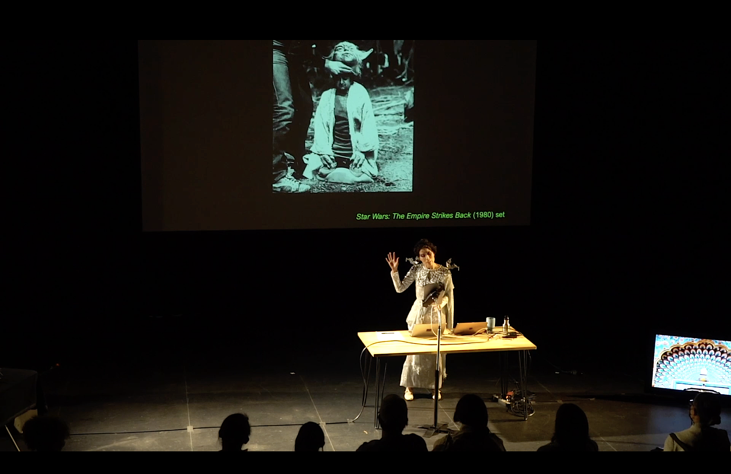 Astria Suparak performing “Asian futures, without Asians” at 2220 Arts, 2023. August 27, 2023 Return to: Asian futures, without Asians multimedia performanceFull resolution (3024 × 1962) Image navigation Next Image Astria Suparak performing “Asian futures, without Asians” at 2220 Arts+Archives, Los Angeles, organized by X-TRA Art Journal, 2023. Photo by Alex Beauregard.