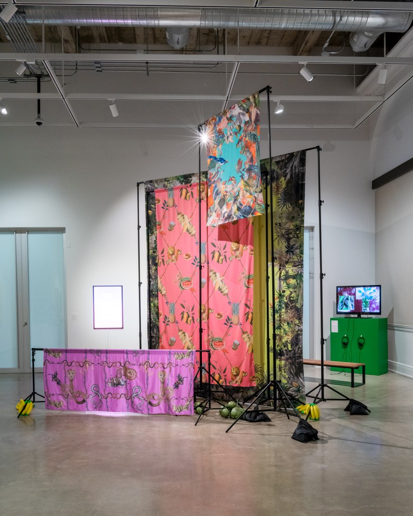 The installation exposes how Enlightenment-era ambitions to catalog and ‘capture’ nature collapse into spectacle and excess. Extending Suparakโs research and lecture-performances, this work presents the tropics beyond geography, where they function as a recirculating visual systemโone endlessly recomposited to sustain fantasy at overlapping, monumental scales.” – Matthew Villar Miranda, curator, Dream Jungle