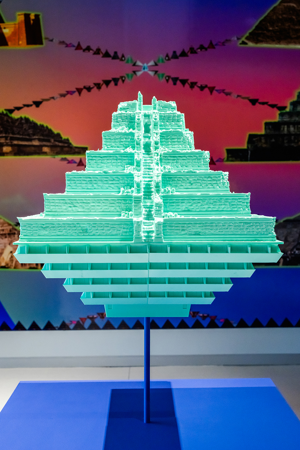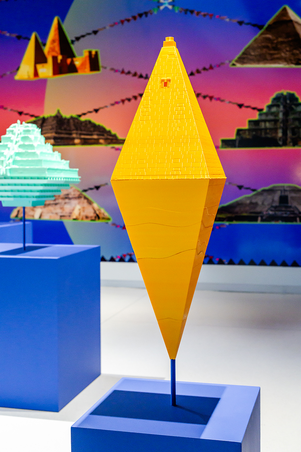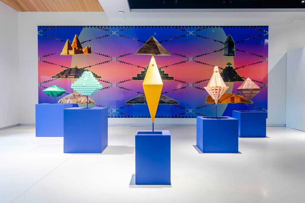 Hovering over these fabrications and projections are the real-life pyramids conceived, designed, and built by humans living across ancient Latin America, Africa, and Asia.