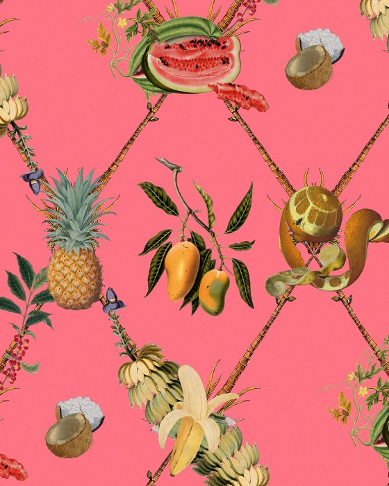 “In this towering installation, Suparak constructs a sprawling set shaped by centuries of imperial fantasy… Snakes coil around prey; a throng of brightly feathered birds erupts into flight above, while fanciful fruits swell into bloated cornucopias.”